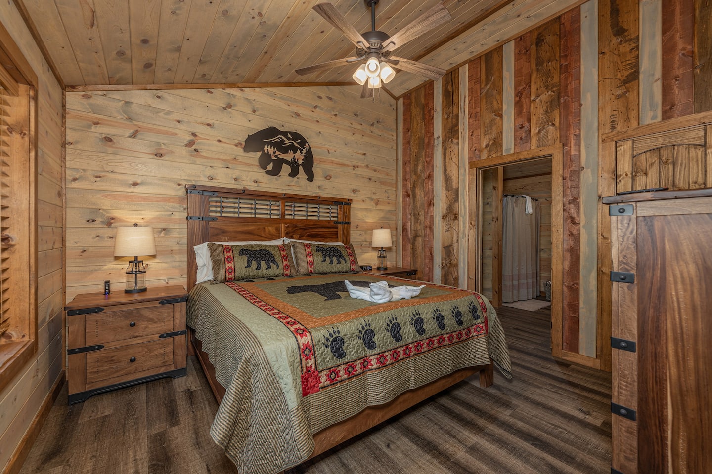 Welcome to Rustic Dreamscapes — a one-of-a-kind cabin that blends rustic charm with luxurious comfort. Featuring uniquely stained tongue and groove walls paired with rusted tin accents, this style of craftsmanship creates a warm, inviting space unlike anywhere else in the area. Perfect for travelers of all kinds!