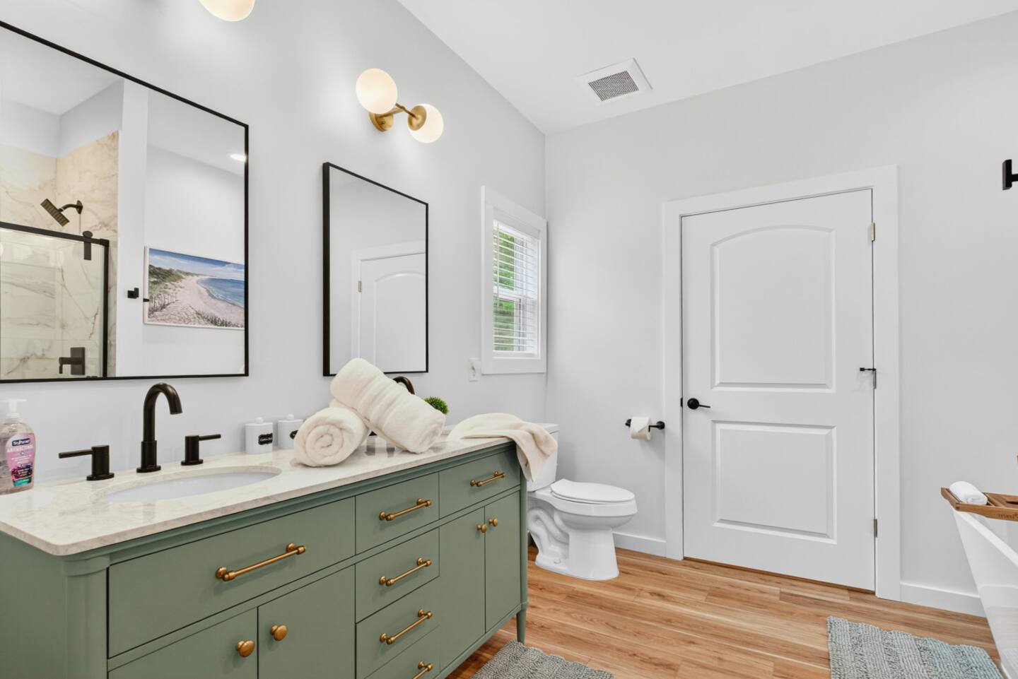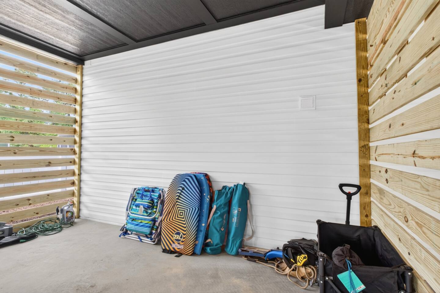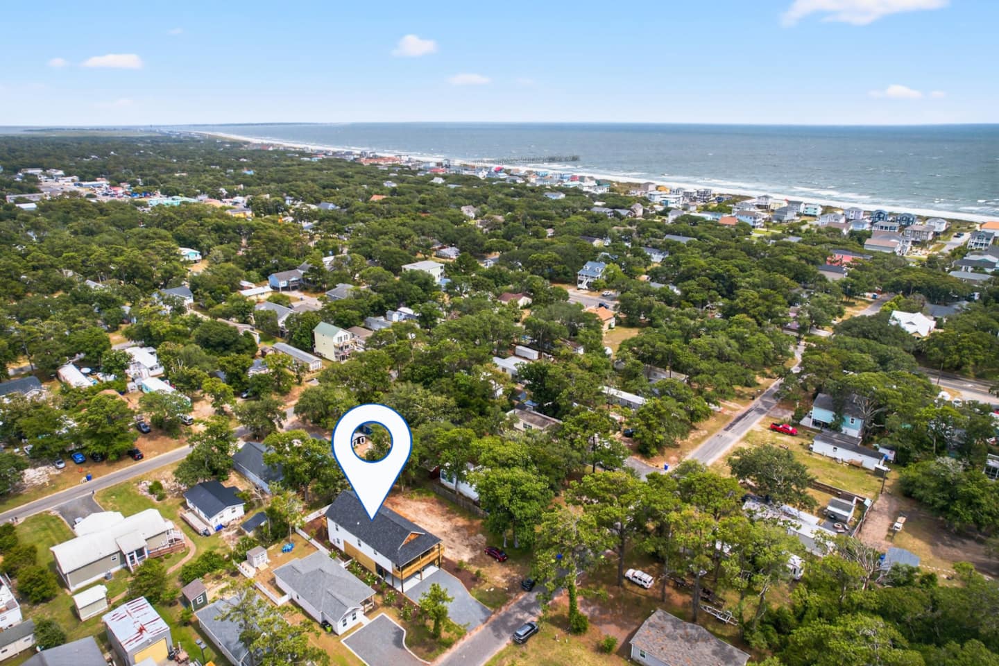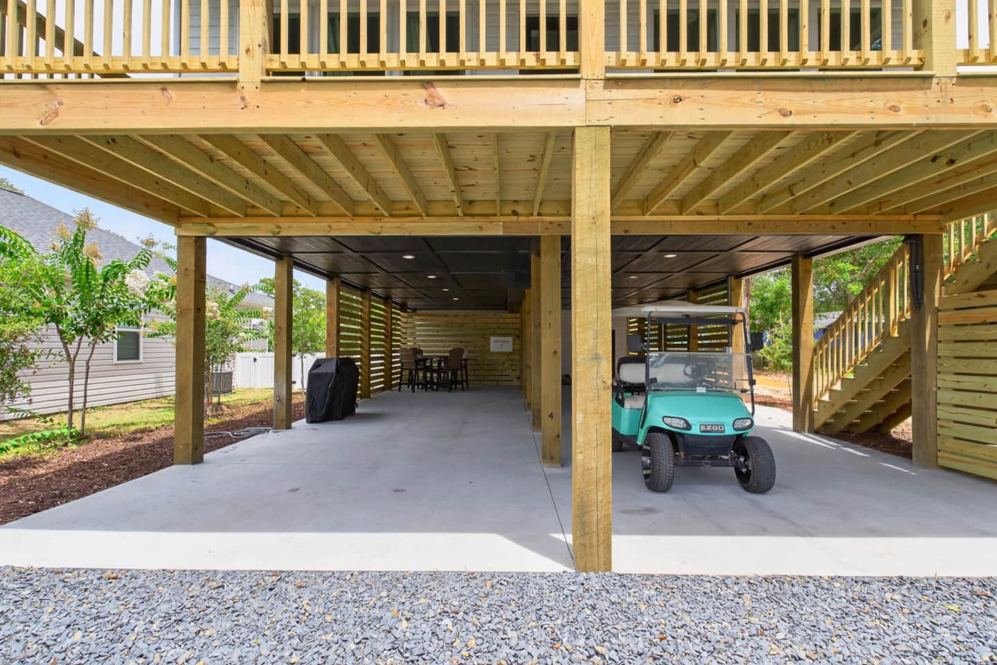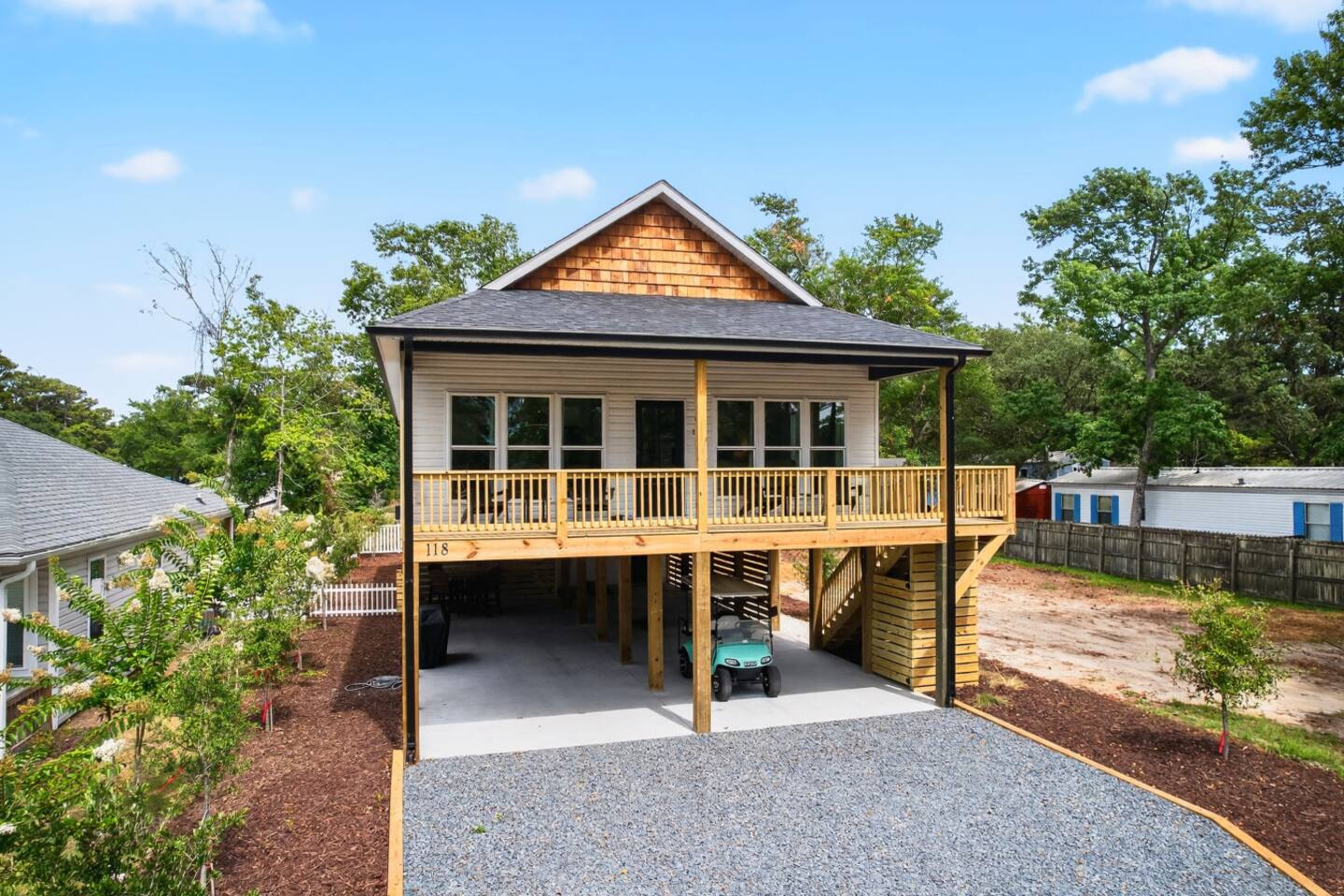 The golf cart was such a great bonus, but the short walk to the beach made it easy either way. We were especially impressed with all the extras: a Shibumi Shade, beach chairs, boogie boards, and fun games. The beds were incredibly comfortable, and the air conditioning kept the house nice and cool. There was plenty of parking, and we found ourselves spending most of our time relaxing around the downstairs table. Everything about the house was modern, convenient, and well-planned. You can tell the hosts thought of everything—we can’t wait to come back!"