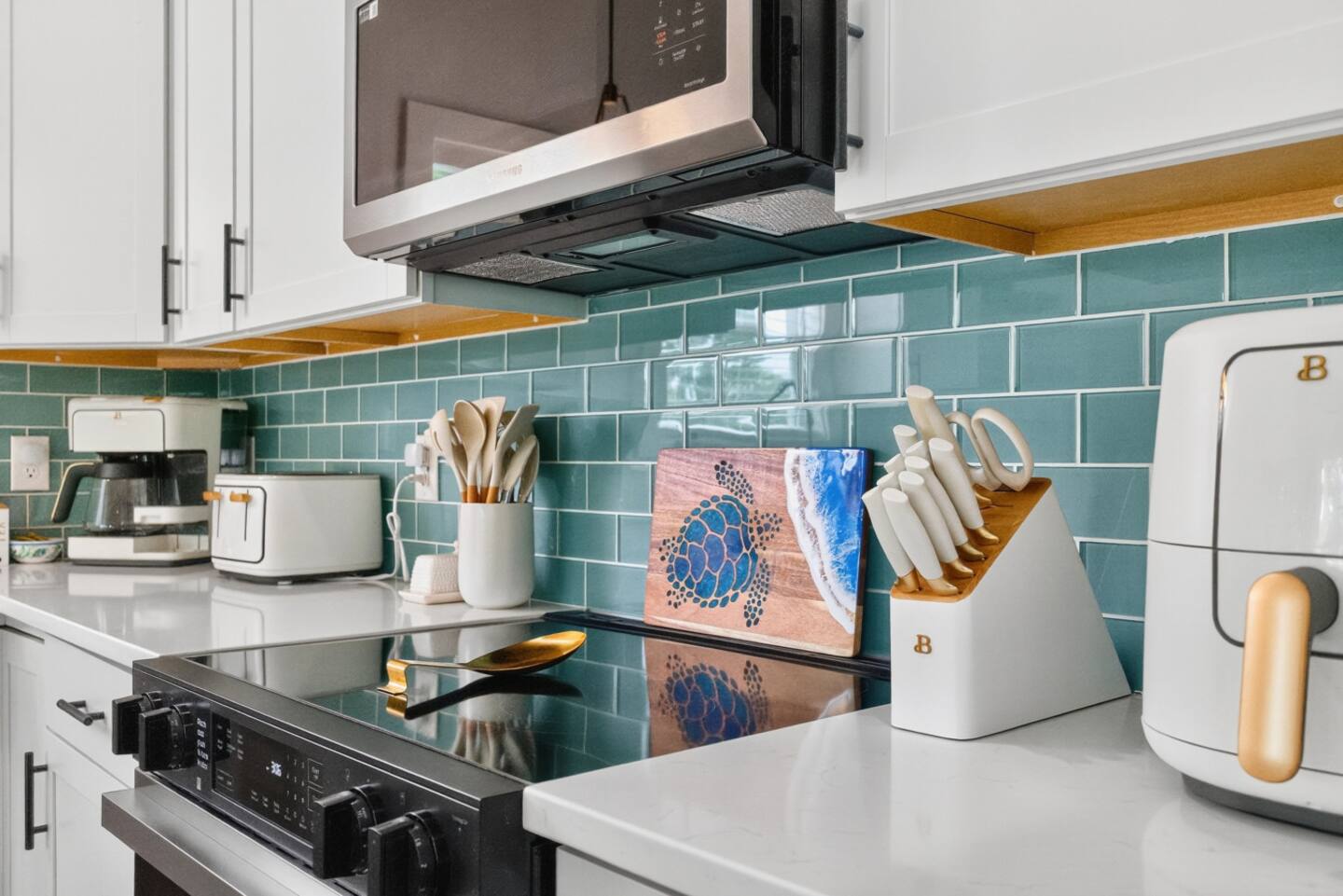 ▪️ Outfitted with Drew Barrymore Small Appliances, including Coffee Maker for K-cups and full pots (coffee pods provided)