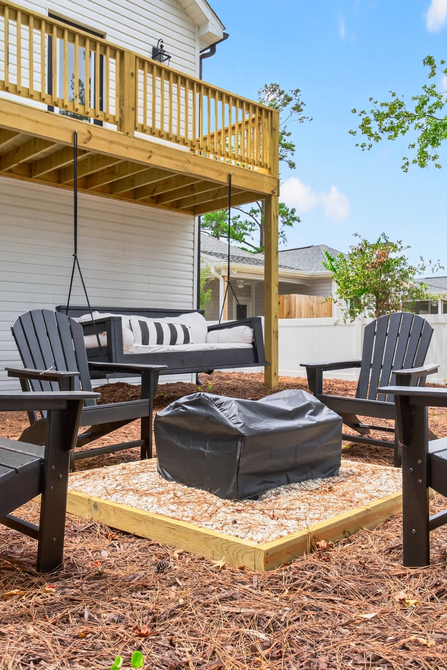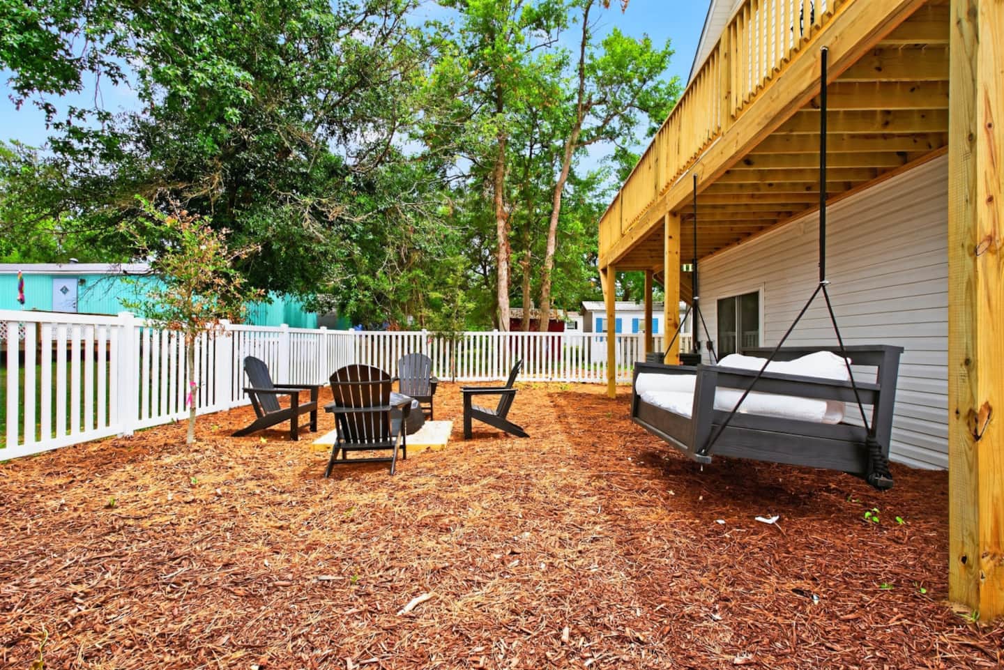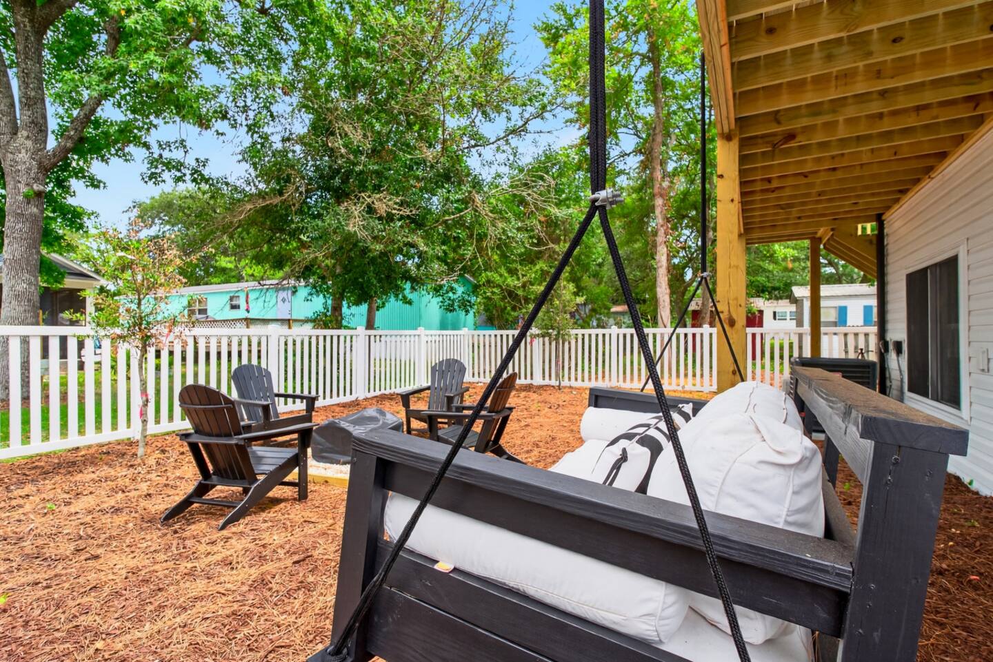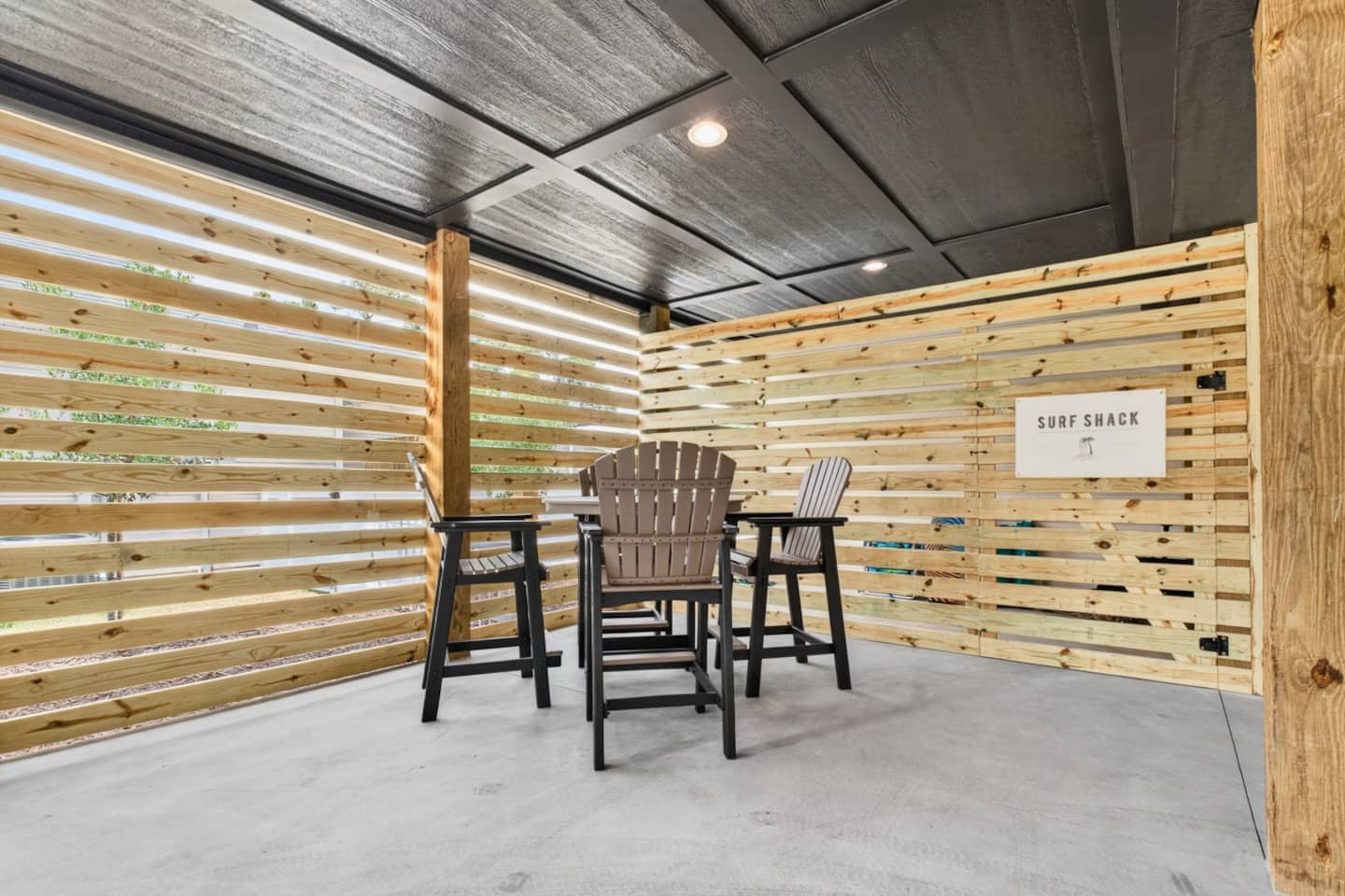 ▪️ Enjoy coastal breezes while sipping your coffee on the outdoor plywood rockers!