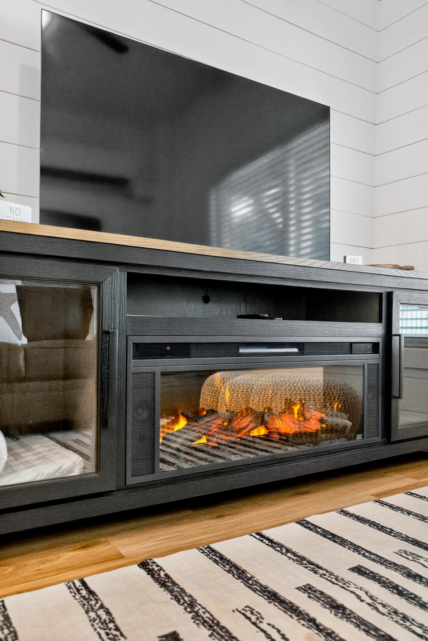▪️ Warm & inviting electric fireplace with remote control